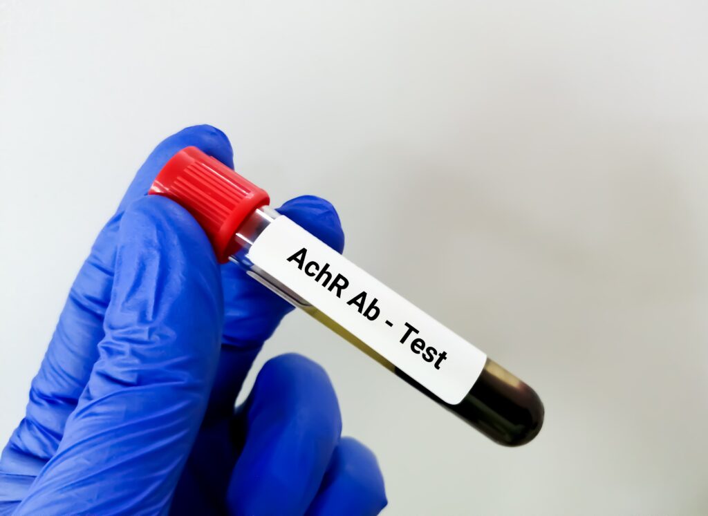 The diagnosis of both antibody-positive and seronegative Myasthenia Gravis (MG) involves a combination of clinical evaluation, serological testing, and neurophysiological studies, but with distinct differences in approach due to the antibody profile. In antibody-positive MG, the diagnosis is significantly aided by the presence of specific antibodies against the acetylcholine receptor (AChR) or muscle-specific kinase (MuSK) in the patient’s blood, serving as a clear biomarker for the condition. The detection of these antibodies through blood tests confirms the diagnosis and helps guide treatment decisions.